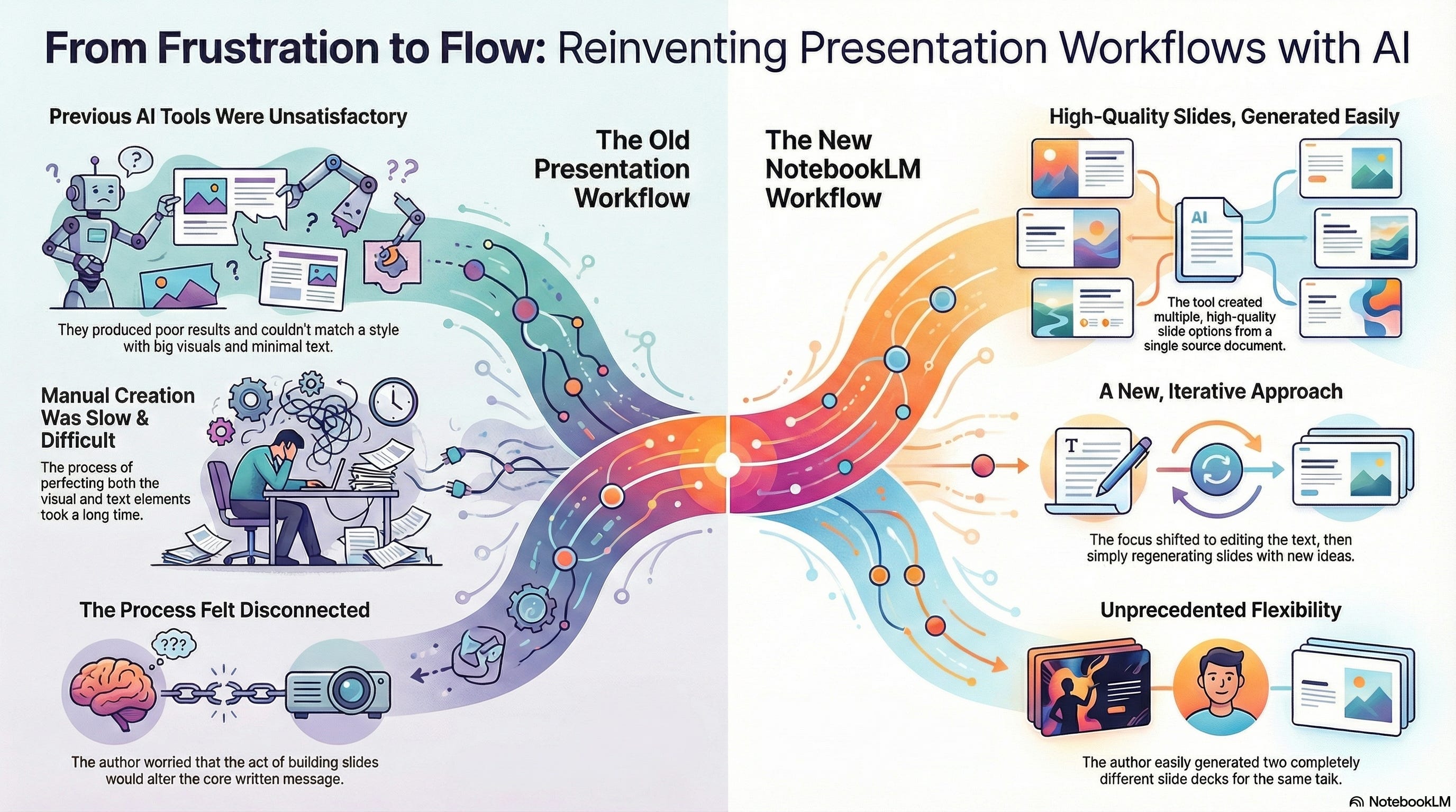 But all of that may have changed forever. NotebookLM’s relatively new slide generation feature not only creates great slides, it changed my workflow completely.